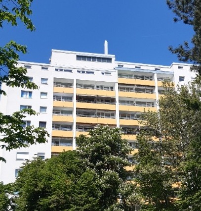 Beschlussfassung der WEG: Die Balkone wurde überbeschichtet mit dem System „Sika Premium Deko“ von der Firma KTW Fassadentechnik GmbH, die neuen Balkongeländer wurde von einem örtlichen Metallbauer gefertigt.